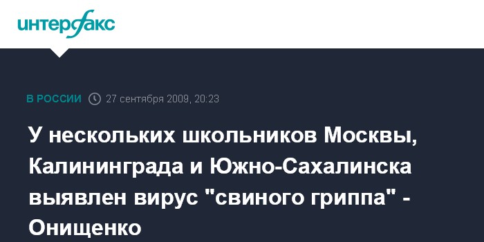 У нескольких школьников Москвы, Калининграда и Южно-Сахалинска выявлен вирус "свиного гриппа" - Онищенко
