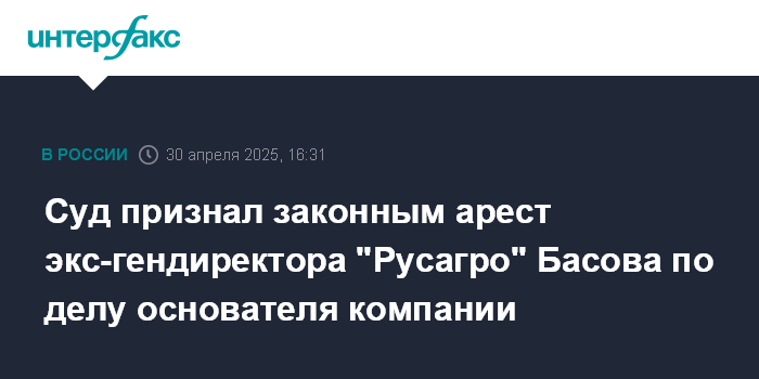 Суд признал законным арест экс-гендиректора "Русагро" Басова по делу основателя компании
