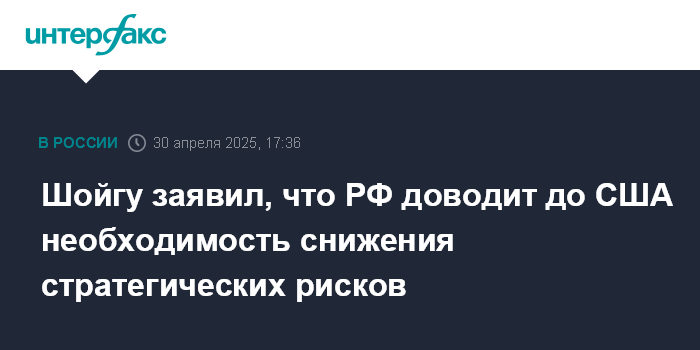 Шойгу заявил, что РФ доводит до США необходимость снижения стратегических рисков