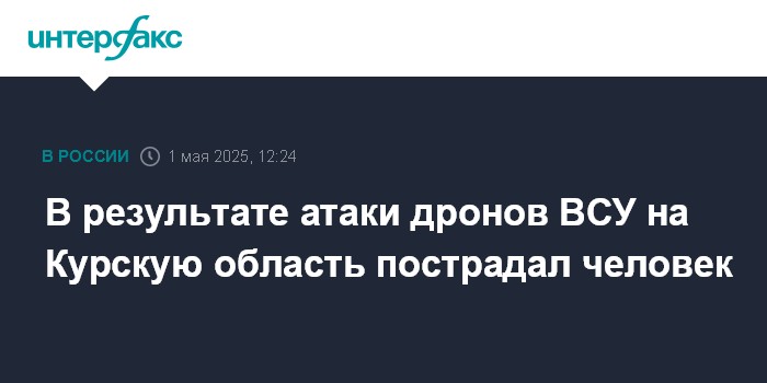 Москва. 1 мая. INTERFAX.RU - Врио губернатора Курской области Александр Хинштейн сообщил об атаке украинских дронов на село Званное Глушковского района, в результате которой пострадал мирный житель.