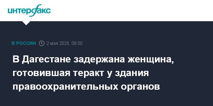 Москва. 2 мая. INTERFAX.RU - Сторонница международной террористической организации задержана в Дагестане за подготовку взрыва у административного здания правоохранительных органов в Хасавюрте, сообщил Центр общественных связей (ЦОС) ФСБ РФ.