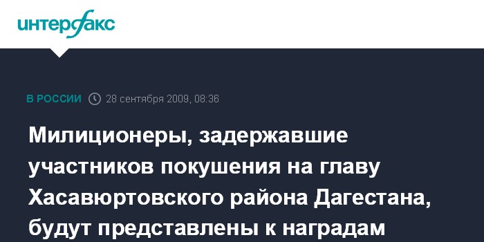 Милиционеры, задержавшие участников покушения на главу Хасавюртовского района Дагестана, будут представлены к наградам
