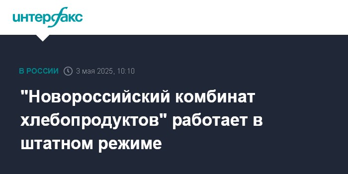 Москва. 3 мая. INTERFAX.RU - ПАО "Новороссийский комбинат хлебопродуктов" (НКХП, входит в группу "ОЗК") после массированной атаки ВСУ на Новороссийск продолжает работу в штатном режиме, сообщил "Интерфаксу" генеральный директор предприятия Юрий Медведев.