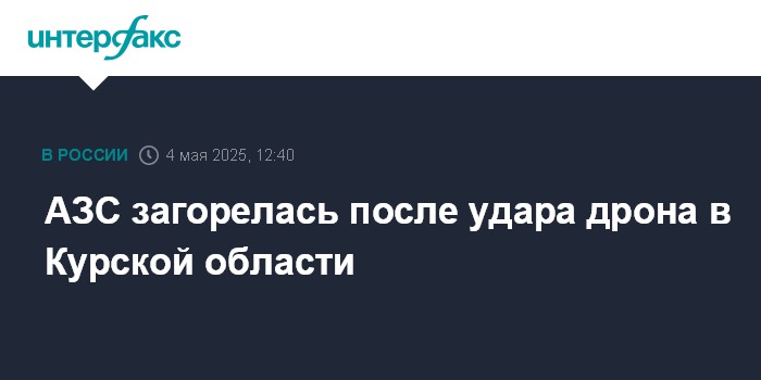 Москва. 4 мая. INTERFAX.RU - Врио губернатора Курской области Александр Хинштейн сообщил о возгорании на АЗС в результате атаки дрона.