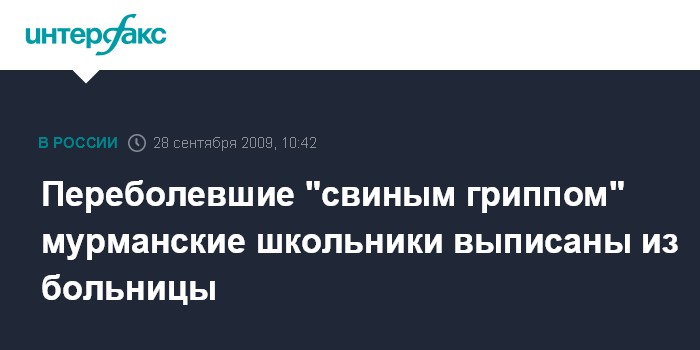 Москва. 28 сентября. INTERFAX.RU – В Мурманской области стали известны результаты анализов школьников, госпитализированных с подозрением на грипп AH1N1.