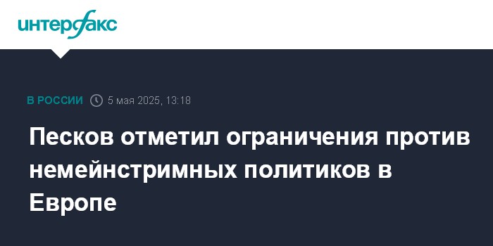 Песков отметил ограничения против немейнстримных политиков в Европе