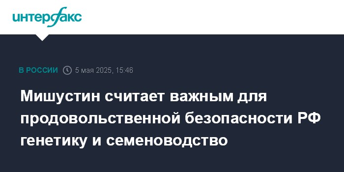 Москва. 5 мая. INTERFAX.RU - Власти РФ многое делают для продовольственной безопасности России, но важно не забывать и о генетике, семеноводстве для ее обеспечения, сообщил премьер РФ Михаил Мишустин.
