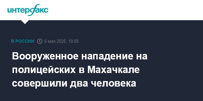 Москва. 5 мая. INTERFAX.RU - МВД по Дагестану уточнило, что на сотрудников полиции в Махачкале в понедельник напали два вооруженных человека, обоих нейтрализовали.
