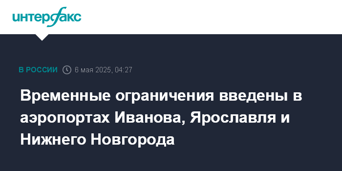 "Для обеспечения безопасности полетов гражданских воздушных судов временные ограничения были также введены на работу аэропортов: Иваново (Южный); Нижний Новгород (Стригино); Ярославль (Туношна)", - написал представитель в своем телеграм-канале.