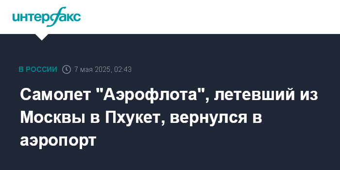 Самолет "Аэрофлота", летевший из Москвы в Пхукет, вернулся в аэропорт