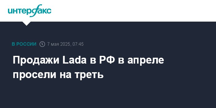 Москва. 7 мая. INTERFAX.RU - Совокупные продажи основных китайских игроков российского рынка новых легковых автомобилей в апреле 2025 года снизились в годовом выражении примерно на четверть, продажи Lada - просели почти на треть, свидетельствуют данные аналитического агентства "Автостат".