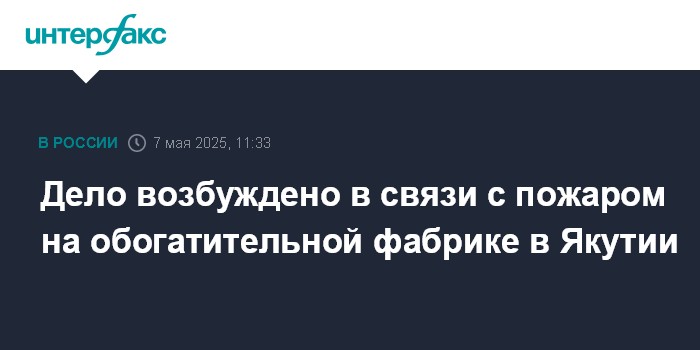 Дело возбуждено в связи с пожаром на обогатительной фабрике в Якутии