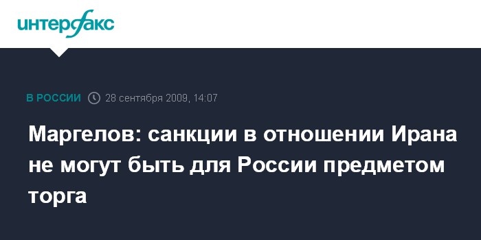 Маргелов: санкции в отношении Ирана не могут быть для России предметом торга