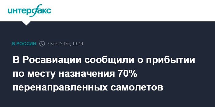 В Росавиации сообщили о прибытии по месту назначения 70% перенаправленных самолетов