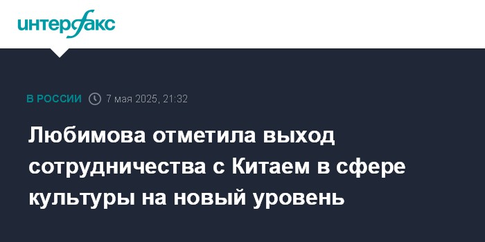 Любимова отметила выход сотрудничества с Китаем в сфере культуры на новый уровень