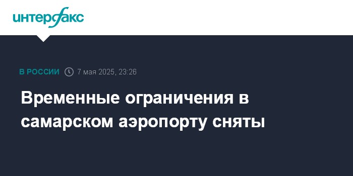 Москва. 7 мая. INTERFAX.RU - Временные ограничения, введенные в среду вечером в АО "Международный аэропорт "Курумоч" (Самара, находится под управлением УК "Аэропорты регионов"), сняты, сообщил представитель Росавиации Артем Кореняко.