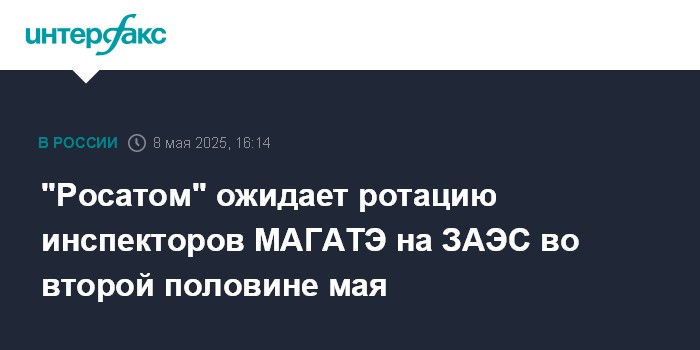 Москва. 8 мая. INTERFAX.RU - Глава госкорпорации "Росатом" Алексей Лихачев заявил, что очередная ротация инспекторов МАГАТЭ на Запорожской АЭС ожидается во второй половине мая.