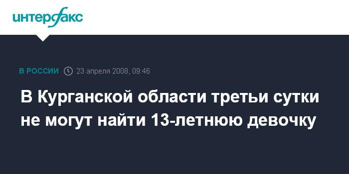 Как сообщалось, в воскресенье 13-летняя жительница Кургана С.Хайрулина вышла из квартиры, где проживает вместе с родителями, и пропала. По мнению сотрудников милиции, девочка, вероятно, решила самостоятельно добраться до деревни Колташево, куда утром того же дня отправилась ее мама.
