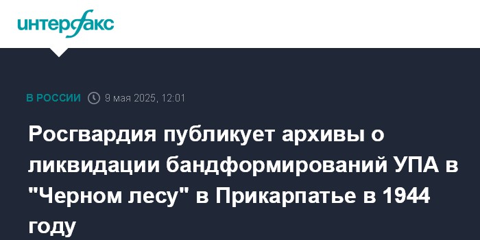 Москва. 9 мая. INTERFAX.RU - Почти 400 участников экстремистской и запрещенной в РФ Украинской повстанческой армии (УПА) были ликвидированы, более 300 задержаны органами НКВД в результате двух масштабных операций по ликвидации бандподполья в так называемом "Черном лесу" в Станиславской области (сейчас - Ивано-Франковской) УССР в 1944 году, следует из архивных документов Росгвардии, предоставленных "Интерфаксу".