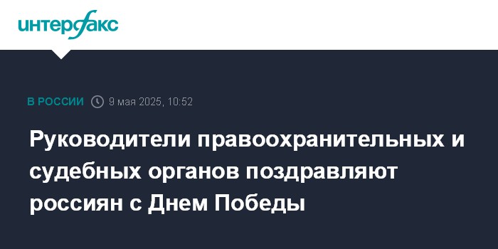 Москва. 9 мая. INTERFAX.RU - Руководители российских правоохранительных и судебных органов поздравляют ветеранов, подчиненных и граждан РФ с Днём Победы в Великой отечественной войне.