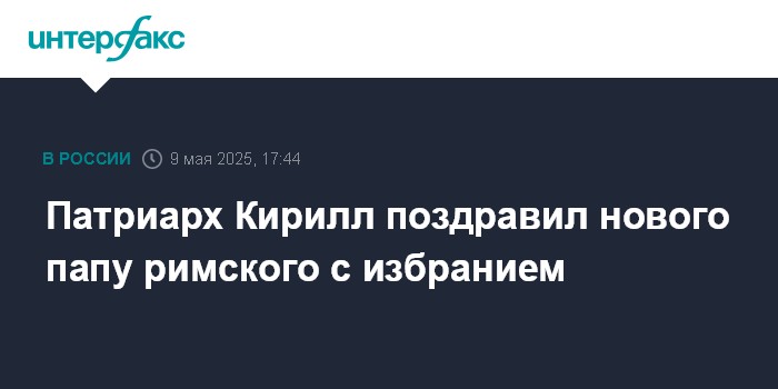Москва. 9 мая. INTERFAX.RU - Патриарх Московский и всея Руси Кирилл направил поздравление избранному папе римскому Льву XIV, выразив надежду на совместный с православными христианами ответ на вызовы времени.