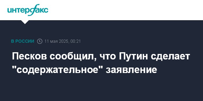 Песков сообщил, что Путин сделает "содержательное" заявление