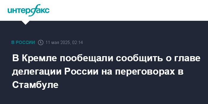 Москва. 11 мая. INTERFAX.RU - В Кремле пообещали назвать главу российской делегации на переговорах с Украиной в Стамбуле 15 мая, которые предложил провести президент РФ Владимир Путин.