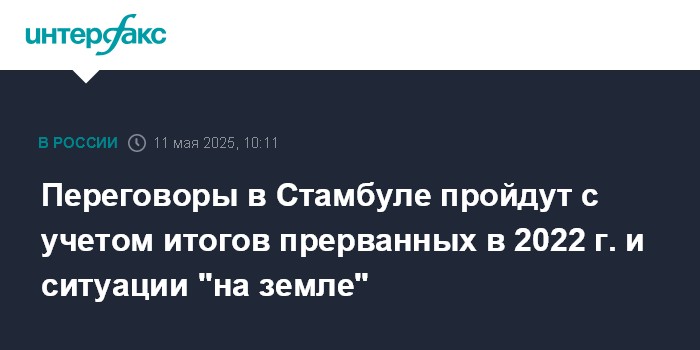 Переговоры в Стамбуле пройдут с учетом итогов прерванных в 2022 г. и ситуации "на земле"