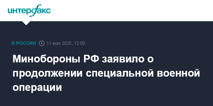 Москва. 11 мая. INTERFAX.RU - Российские войска продолжили СВО после завершения режима прекращения огня, сообщило Минобороны РФ в воскресенье.
