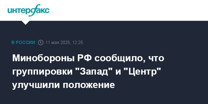 Москва. 11 мая. INTERFAX.RU - Подразделения группировки войск "Запад" заняли более выгодные рубежи, группировка "Центр" улучшила тактическое положение, нанесены удары по ВСУ в зоне ответственности других группировок войск, заявили в Минобороны РФ в воскресенье.