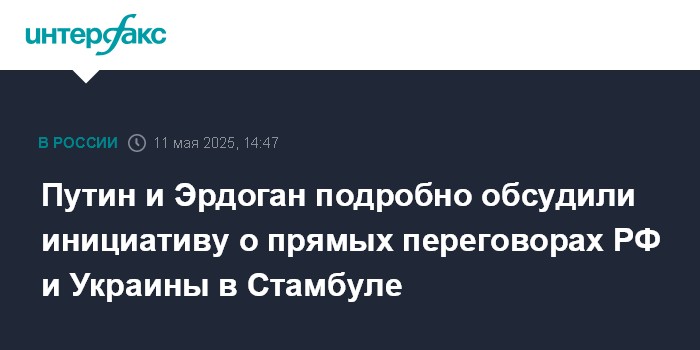 Путин и Эрдоган подробно обсудили инициативу о прямых переговорах РФ и Украины в Стамбуле