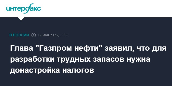 Глава "Газпром нефти" заявил, что для разработки трудных запасов нужна донастройка налогов