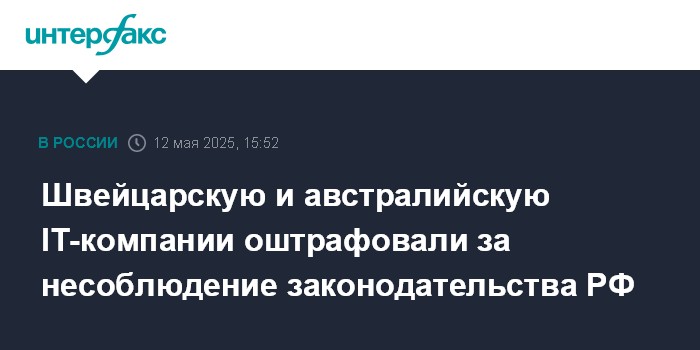 Швейцарскую и австралийскую IT-компании оштрафовали за несоблюдение законодательства РФ