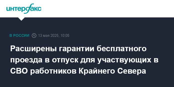 Расширены гарантии бесплатного проезда в отпуск для участвующих в СВО работников Крайнего Севера