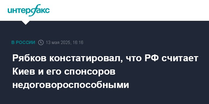 Рябков констатировал, что РФ считает Киев и его спонсоров недоговороспособными