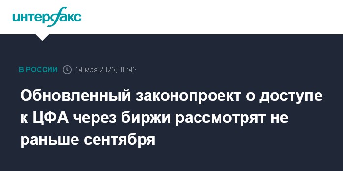 Москва. 14 мая. INTERFAX.RU - Комитет Госдумы по финансовому рынку на заседании в среду предложил поставить на сентябрь рассмотрение в первом чтении законопроекта о механизме допуска цифровых финансовых активов (ЦФА) к торгам на традиционных биржах через выпуск цифровых свидетельств.