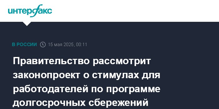 Правительство рассмотрит законопроект о стимулах для работодателей по программе долгосрочных сбережений