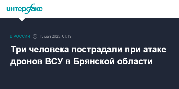 Москва. 15 мая. INTERFAX.RU - Губернатор Брянской области Александр Богомаз сообщил об атаке дронами-камикадзе ВСУ в Климовском районе, есть пострадавшие.