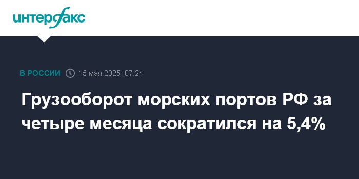 Москва. 15 мая. INTERFAX.RU - Грузооборот морских портов РФ за четыре месяца 2025 года уменьшился на 5,4% по сравнению с январем-апрелем 2024 года и составил 280,7 млн тонн, сообщается на сайте Ассоциации морских торговых портов (АСОП).