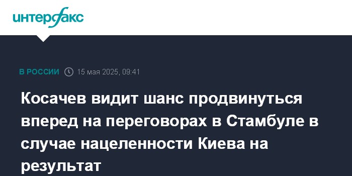 Москва. 15 мая. INTERFAX.RU - Возможность продвижения вперед на переговорах в Стамбуле имеется, если украинская сторона подойдет к переговорам без шумихи и с нацеленностью на результат, заявил вице-спикер Совета Федерации Константин Косачев.