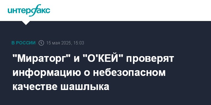 Москва. 15 мая. INTERFAX.RU - АПХ "Мираторг", один из ведущих агрохолдингов РФ, и сеть гипермаркетов "О"КЕЙ" проверят информацию о небезопасном качестве шашлыка.