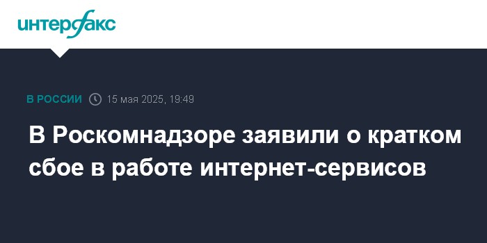 Москва. 15 мая. INTERFAX.RU - Центр мониторинга и управления сетью связи общего пользования Роскомнадзора зафиксировал кратковременный сбой в работе как российских, так и зарубежных интернет-сервисов с 18:40, сообщила "Интерфаксу" пресс-служба ведомства.