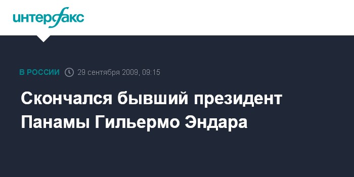 Москва. 29 сентября. INTERFAX.RU - Бывший президент Панамы Гильермо Эндара скончался в возрасте 73 лет, передает во вторник агентство ЭФЭ.