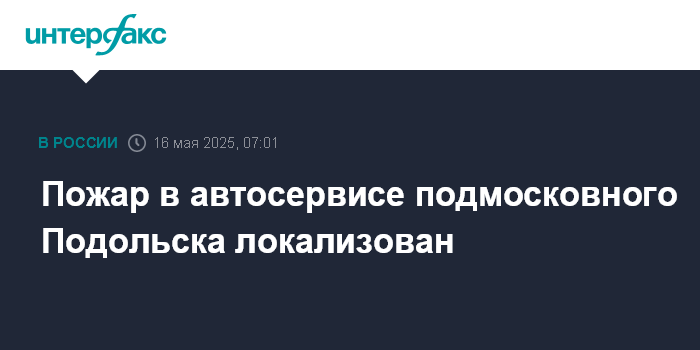 Москва. 16 мая. INTERFAX.RU - Возгорание в автосервисе в подмосковном Подольске локализовано на площади 1,5 тыс. кв. метров, сообщает МЧС РФ.