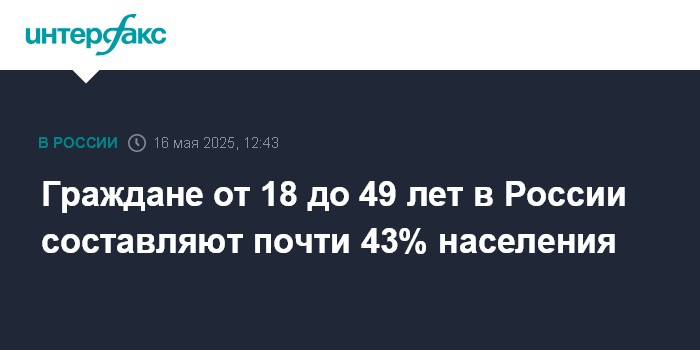 Граждане от 18 до 49 лет в России составляют почти 43% населения