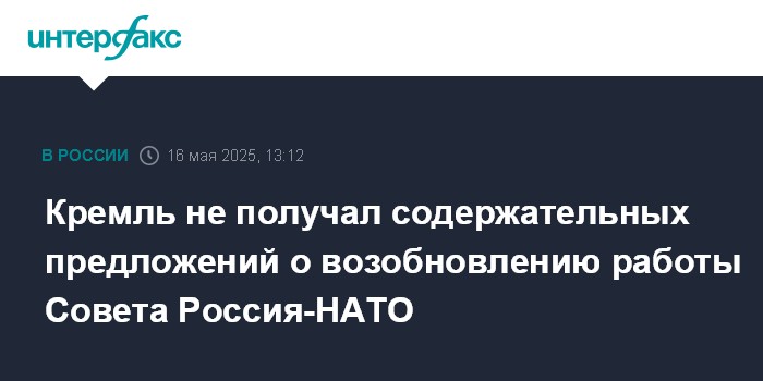 Москва. 16 мая. INTERFAX.RU - Каких-либо содержательных предложений от США по возобновлению работы Совета Россия-НАТО не поступало, в нынешних условиях об этом трудно говорить, заявил на брифинге пресс-секретарь президента России Дмитрий Песков.