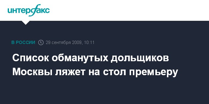 Список обманутых дольщиков Москвы ляжет на стол премьеру