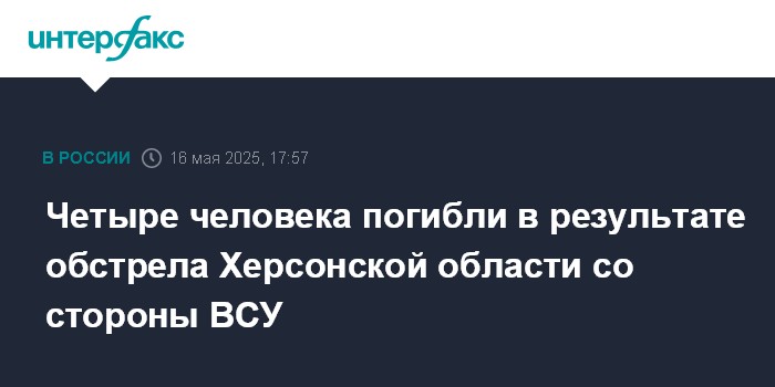Москва. 16 мая. INTERFAX.RU - Четыре человека погибли в Херсонской области в результате обстрела со стороны вооруженных сил Украины, сообщил в пятницу губернатор региона Владимир Сальдо.