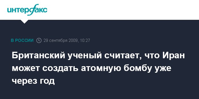 Москва. 29 сентября. INTERFAX.RU – Иран может создать собственную атомную бомбу в течение ближайших нескольких лет, заявил старший эксперт по нераспространению ядерного оружия и разоружению Международного института стратегических исследований Марк Фитцпатрик в понедельник на пресс-конференции в Лондоне.