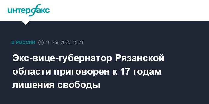 Экс-вице-губернатор Рязанской области приговорен к 17 годам лишения свободы